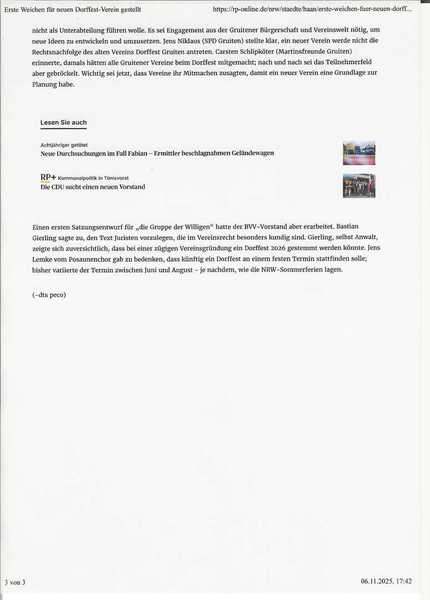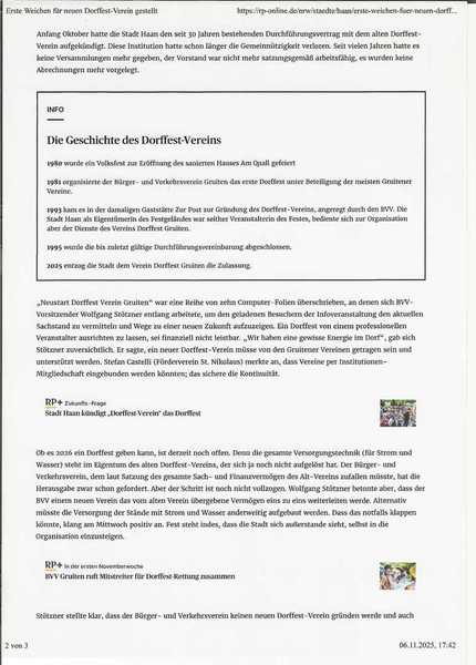 Hier die aktuellen Berichte aus der RP /Wz und dem Haaner Treff