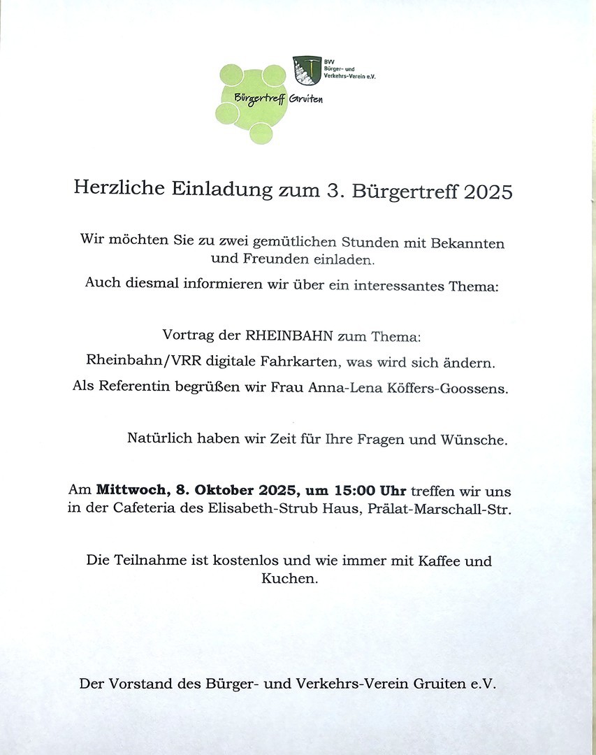 Der nächsten Bürgertreff im Frühjahr 2025 wird etwas früher beginnen und neue Themen haben.